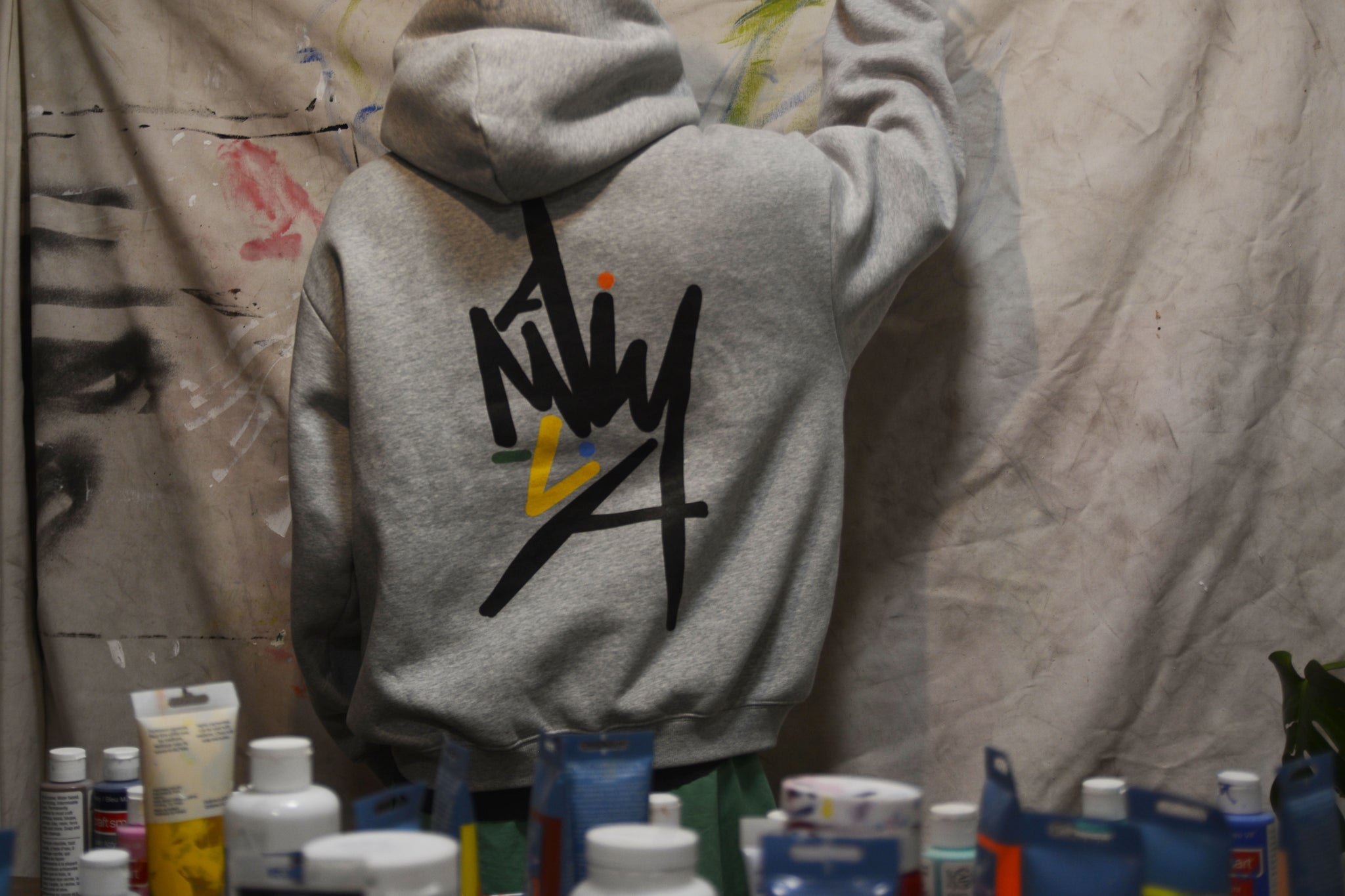 The wearable art print for my painting; 'Flight of an Orchard' 2024. Includes the signature Mackay Art Co logo on the back.